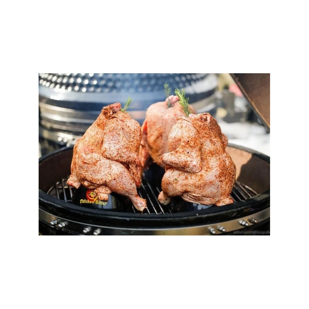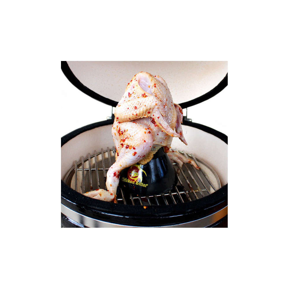 Stojan na kuře z keramiky naplníte tekutinami, například pivem, vínem nebo dokonce kolou. Kuře umístíte na horní část stojanu a položíte ho na gril. Teplo odpařuje tekutinu, tato pára zajistí, že je kuře uvnitř pěkně propečené a nevysuší se. Protože je kuře umístěno přímo na stojanu, je jeho vnější strana rovnoměrně propečená.