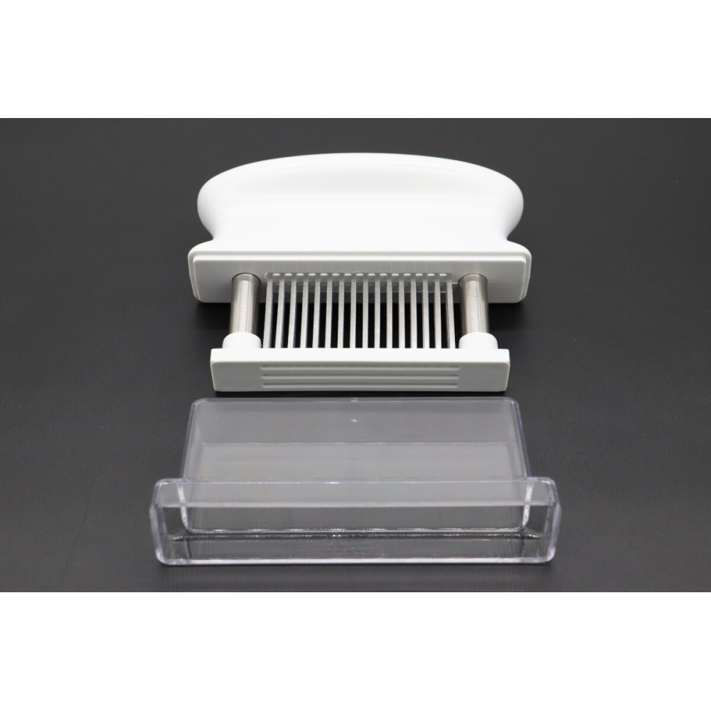 Tlačítko na maso se vtlačí do syrového masa a vytvoří se v něm malé otvory. Tyto malé otvory zajišťují rychlejší přípravu masa a udržují maso pěkně šťavnaté.