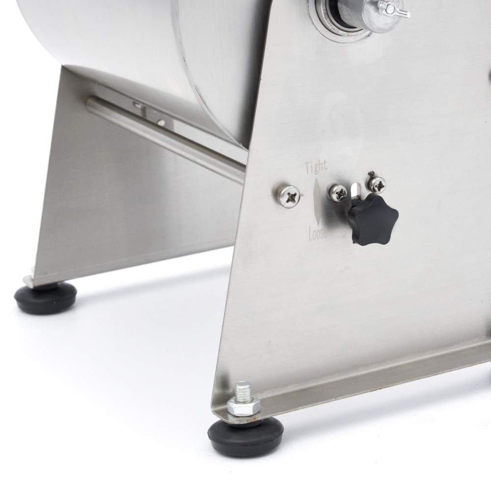 Mixování masa v tomto nerezovém mixéru je velmi snadné: stačí otevřít víko a naplnit nádrž požadovaným množstvím masa nebo ryb. Nádrž má objem 10 litrů a je vhodná pro zpracování 7,5 kg masa nebo ryb. Po přidání masa můžete přidat koření, jako jsou bylinky, ořechy nebo zelenina. Abyste vše dobře promíchali, otáčejte rukojetí, dokud nedosáhnete správné struktury masa nebo náplně. Mixér na maso se může otáčet ve dvou směrech. Výklopná nádrž je velmi praktická, když chcete obsah vyjmout, a nabízí také velkou výhodu při čištění. Pro dobrou přilnavost na téměř jakémkoli povrchu je mixér na maso vybaven čtyřmi gumovými nožičkami.