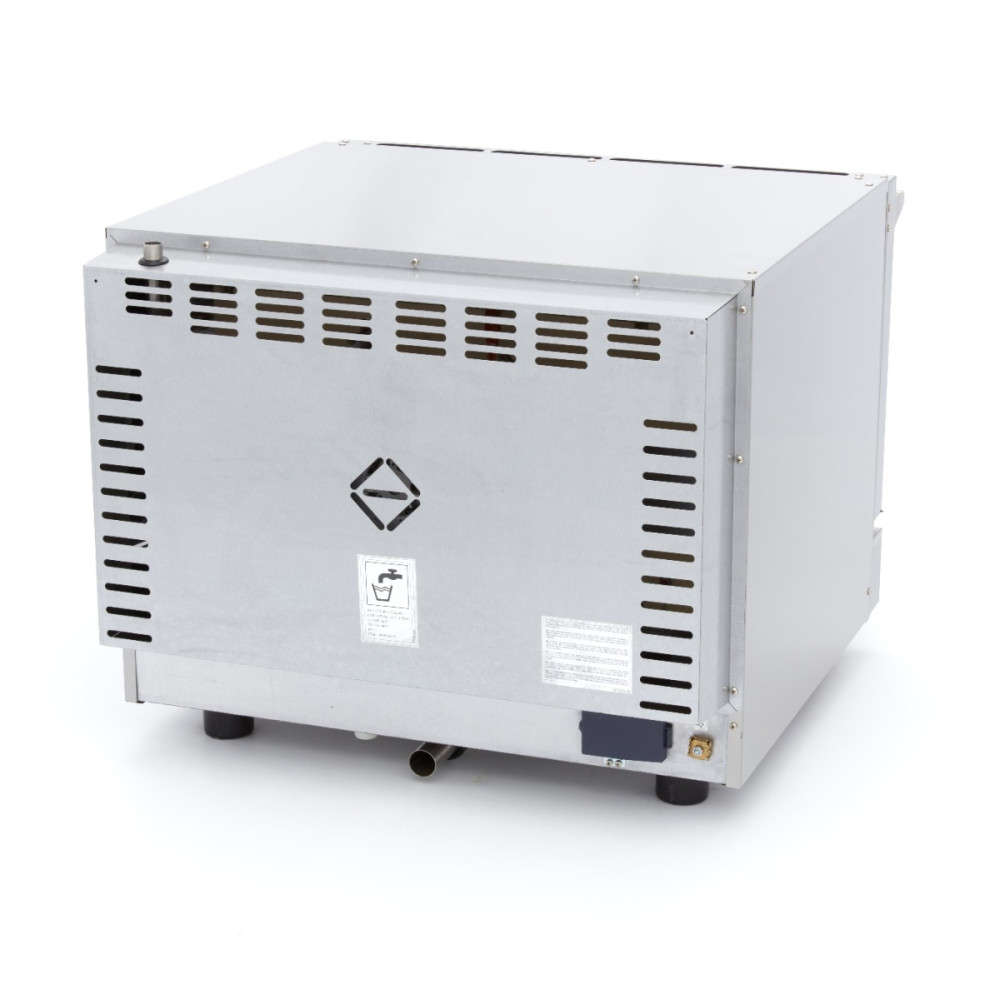 Tato vysoce kvalitní kombinovaná parní trouba je nepostradatelným spotřebičem v profesionálních kuchyních. Tento model je vhodný pro výrobu potravin díky své kapacitě pro 4 plechy 1/1 GN nebo 4 plechy bakerynorm (60 x 40 cm). Má snadno ovladatelná analogová tlačítka pro nastavení teploty, páry a praktický časovač.