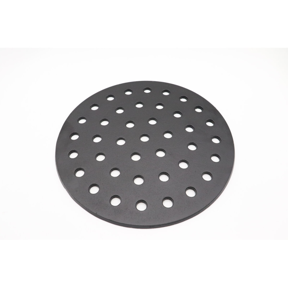 Litinový rošt na dřevěné uhlí se nachází na dně keramického ohniště Kamado. Uhlí leží na mřížce na dřevěné uhlí. Otvory v mřížce zajišťují dobrou cirkulaci vzduchu.