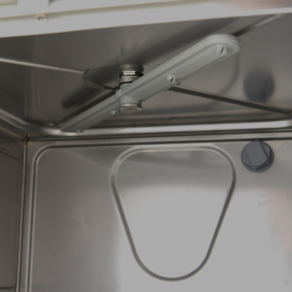 Tato profesionální myčka skla s oplachovým čerpadlem je tichý a výkonný stroj s velkou rukojetí. Pracuje velmi rychle, aby byly sklenice co nejdříve opět v provozu. Za pouhých 120 sekund jsou sklenice a drobné nádobí vyčištěny a opláchnuty horkou vodou a připraveny k dalšímu použití.