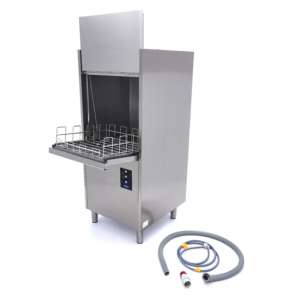 Začít pracovat s tímto profesionálním spotřebičem je velmi snadné. Pomocí ovládacího panelu, který je chráněn stupněm krytí IPX4, takže se za tlačítka nedostane voda, stačí myčku hrnců zapnout a voda se automaticky naplní a ohřeje. Pomocí druhého tlačítka můžete nastavit mycí program. Hrnce a pánve se myjí při teplotě 60 °C a poté se oplachují horkou vodou o teplotě 80 °C, takže nádobí je opět rychle suché díky odpařování. Teplotu mytí a oplachování lze nastavit. Tato myčka hrnců se dodává s drátěným košem o rozměrech 56 x 63 cm z nerezové oceli, jakož i s přívodní hadicí pro připojení myčky k přívodu vody a vypouštěcí hadicí.