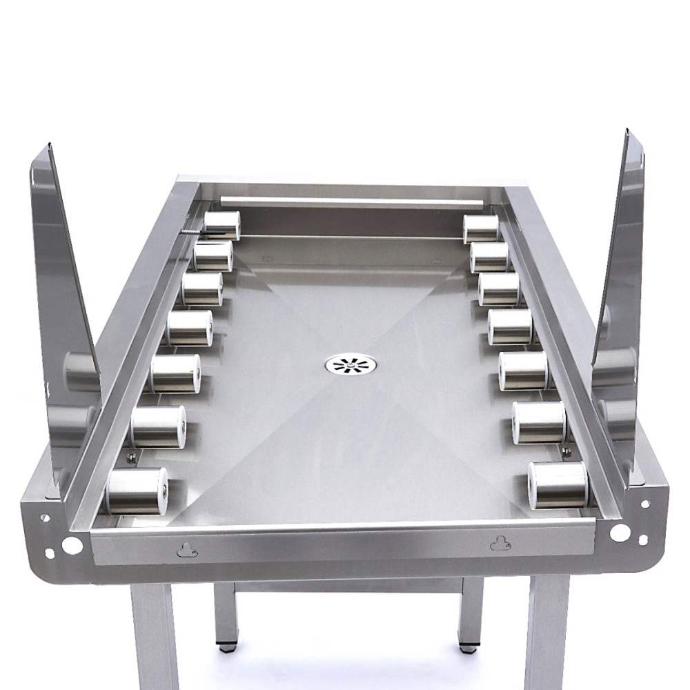 Tento rovný válečkový stůl z nerezové oceli je ideální volbou pro snadný a efektivní provoz komerčních kuchyní. Umožňuje také rychlé a snadné čištění.