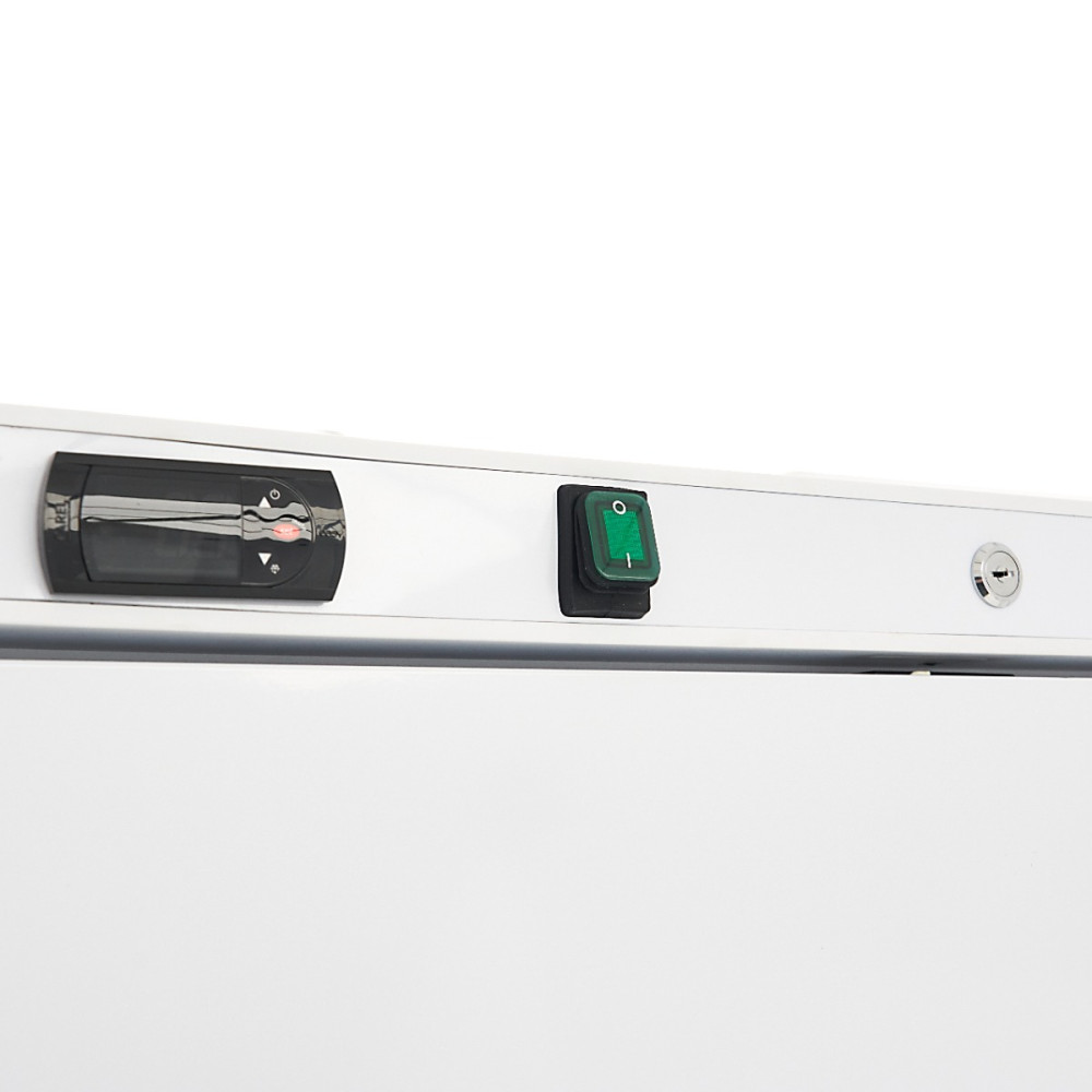 Při práci s čerstvými surovinami je důležité mít k dispozici ledničku, která vše udrží co nejdéle v chladu. Tato profesionální bílá chladnička se dodává v bílé barvě a má celkový objem 600 l. Je vybavena čtyřmi nastavitelnými policemi. Díky tomu si můžete zvolit nejlepší uspořádání podle svých potřeb. Nabízí také možnost flexibilně rozšířit počet polic o další přihrádky. Součástí dveří je zámek pro větší pohodlí.