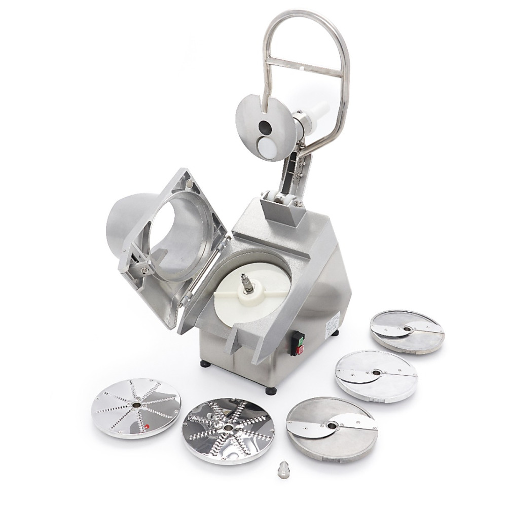 Krájejte ovoce a zeleninu tímto kompaktním, ale profesionálním kráječem zeleniny. Je vybaven velkým vstupním otvorem a pěti krájecími kotouči. Díky velkému vstupnímu otvoru a jedné rychlosti můžete nakrájet 60 až 450 kg ovoce a zeleniny za jednu hodinu. Tento kráječ je ideální pro profesionální kuchyně, potravinářské vozy a restaurace.