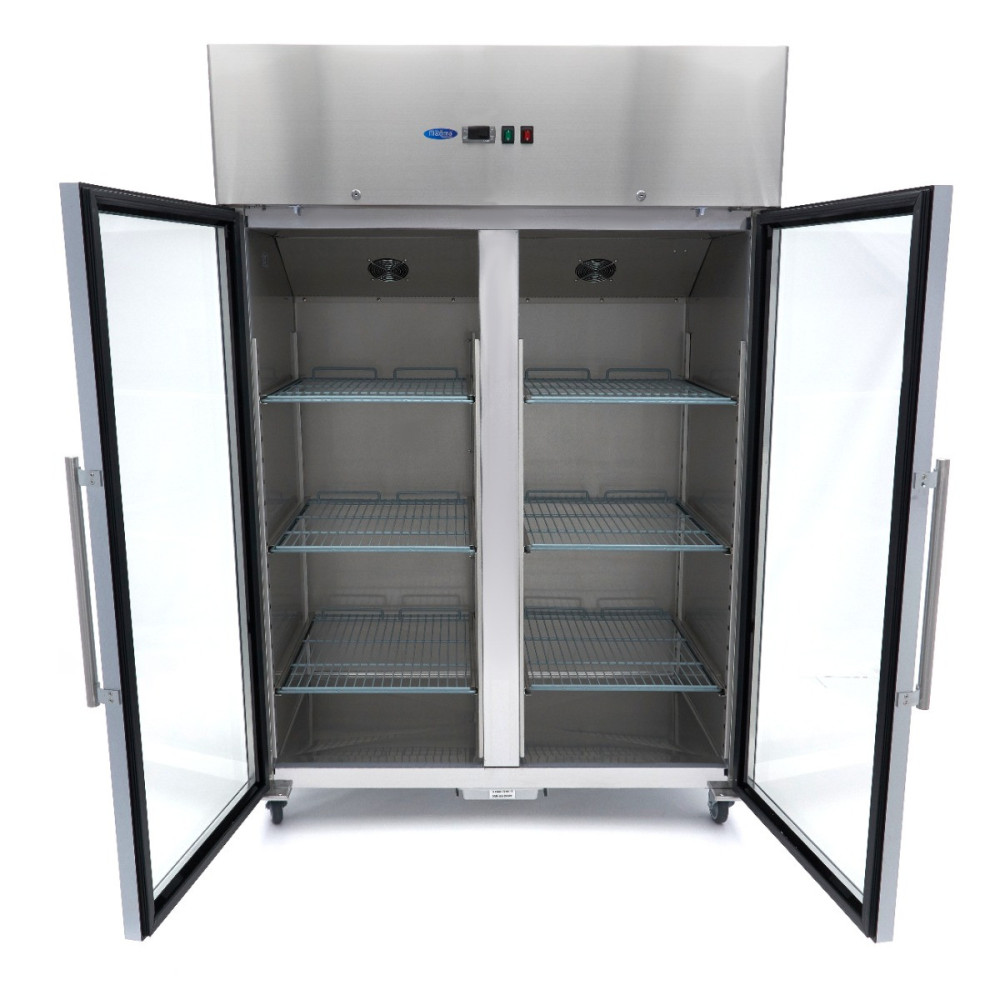 Maxima Mrazící skříň - 1200 l - 6 nastavitelné police (2/1 GN) - nerezová ocel - se skleněnými dveřmi | 09400016