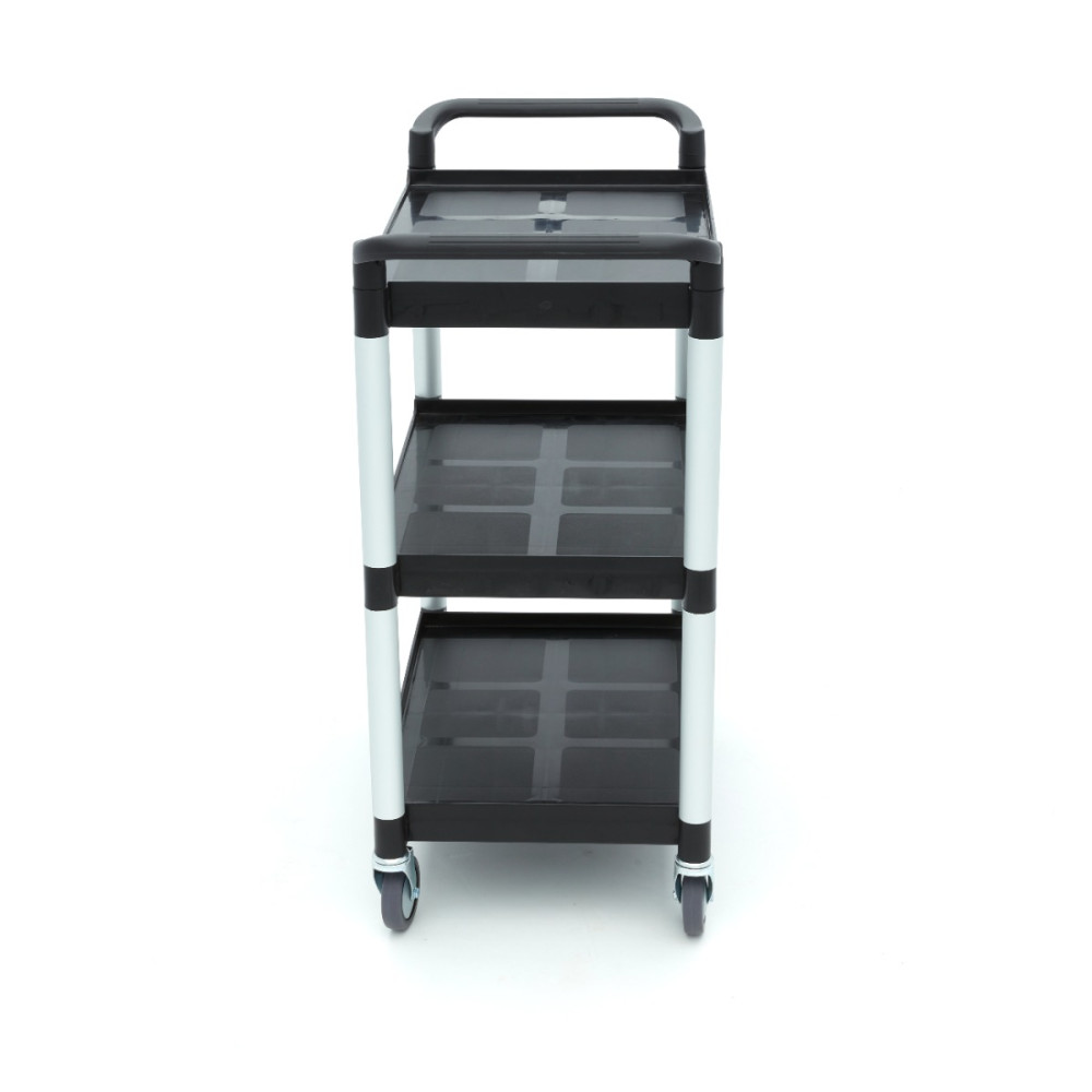Tento servírovací vozík vám ušetří spoustu chůze a zvedání, protože práci za vás odvede servírovací vozík. Je ideální pro přepravu a servírování jídel. Servírovací vozík je také výborným pomocníkem při úklidu špinavého nádobí v kuchyni. Tento profesionální servírovací vozík je vybaven třemi plastovými policemi.