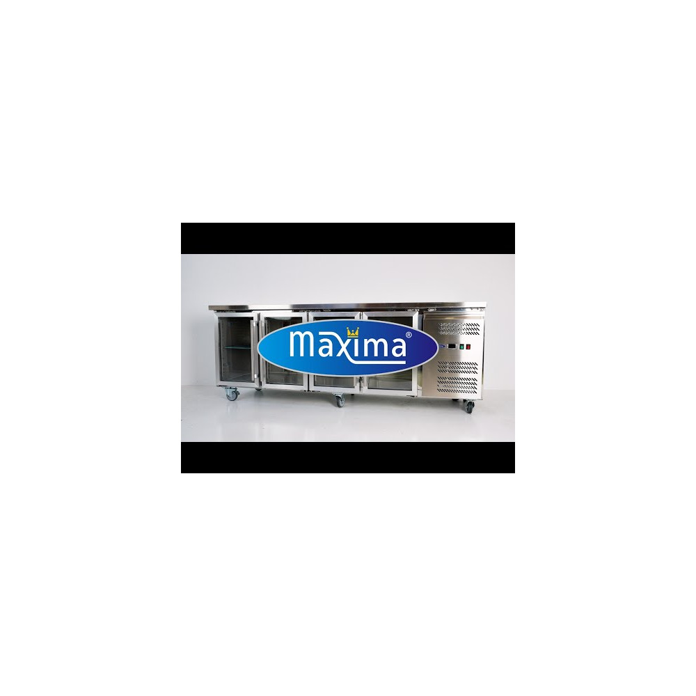 Jedná se o největší pultovou chladničku v nabídce Maxima, která má nejméně čtyři dveře a uzamykatelný kompresorový prostor. Pultová chladnička má šest koleček s brzdami na předních kolečkách. Díky tomu se s ní snadno pohybuje. Čtyři skleněné dveře mají robustní madla a vyhřívané těsnění dveří, které zabraňuje zamrznutí. Dveře se samy zavírají díky magnetickému těsnění dveří, které zajišťuje, že se neztratí studený vzduch, když dveře nejsou řádně zavřené. Snadno také uvidíte, kde máte uložené věci, čímž se sníží potřeba zbytečného otevírání dveří. Když potřebujete objednat ingredience, rychle zjistíte, jaké jsou vaše skladové zásoby.