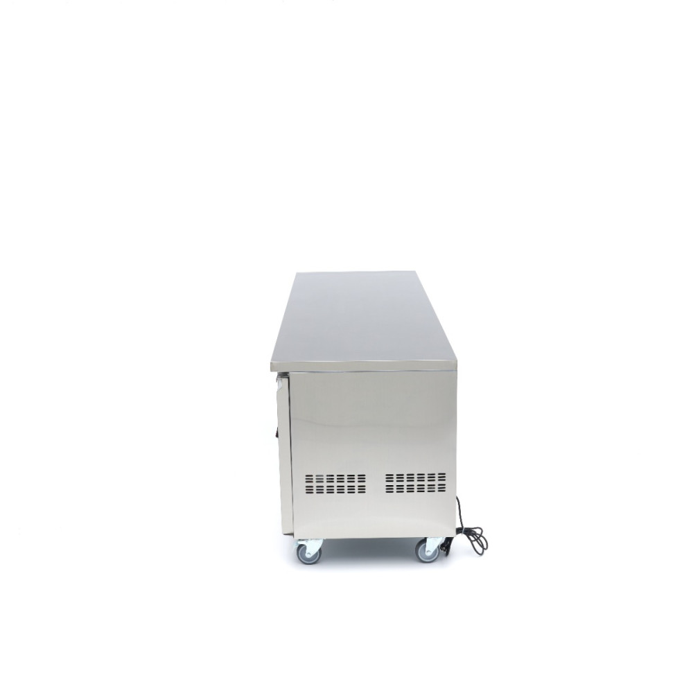 V této pultové chladničce lze skladovat dostatečné množství chlazených produktů. Tato chladnička má prostornou pracovní plochu o šířce 223 cm a hloubce 70 cm. Je zde dostatek místa pro dvě nebo tři osoby, které mohou pracovat na přípravě nebo sestavování krásných pokrmů. A produkty lze snadno vyndat z chladicí jednotky pod pracovní deskou.