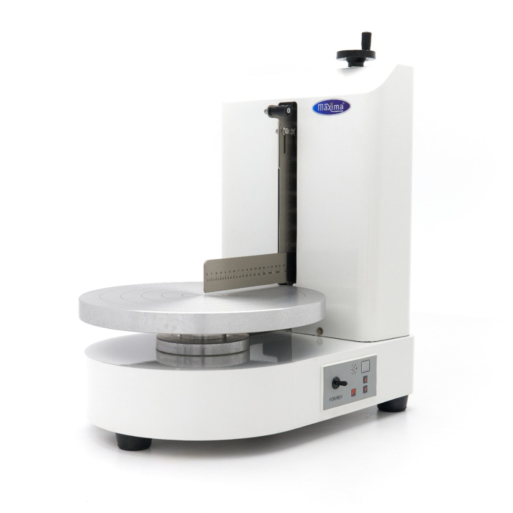 S tímto strojem na zdobení dortů snadno vyhladíte dorty. Dort se rovnoměrně otáčí na plošině, zatímco vertikální a horizontální nože zajišťují odstranění veškeré přebytečné polevy a vytvářejí úhledné boky a vršek. Stroj má také nastavitelnou rychlost v rozmezí 40-225 otáček za minutu a lze ji nastavit v desetistupňových krocích. Otočný stůl se může otáčet oběma směry.