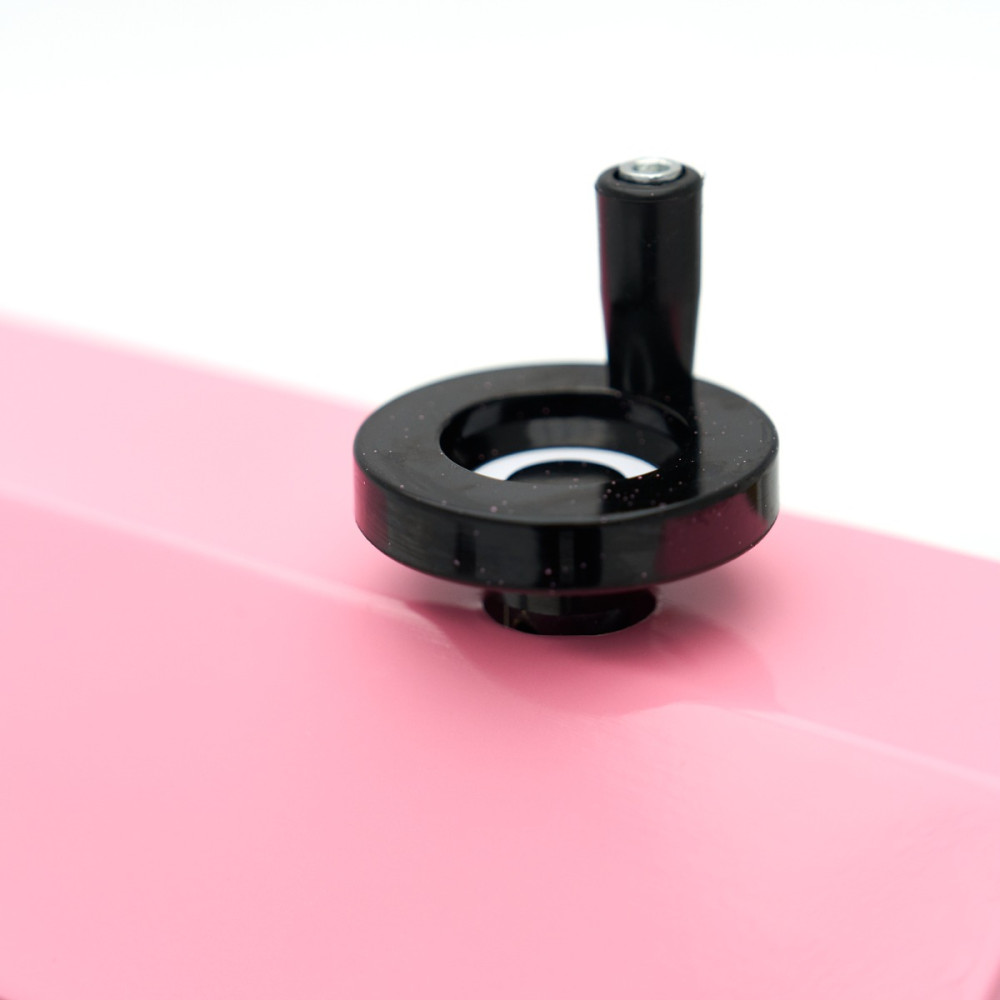 S tímto růžovým strojem na zdobení dortů bude váš dort po celém obvodu zcela hladký. Horizontální a vertikální nože odstraní přebytečnou polevu a zajistí dokonale hladké boky a vrchní část dortu. Otočný stůl má průměr Ø 36,4 cm a nastavitelné otáčky 40-225 ot/min.