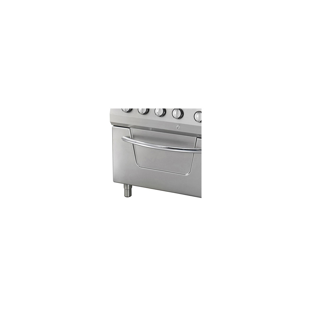 Díky celonerezovému tělu a odolným litinovým podpěrám pánví je tento sporák stvořen pro nepřetržitý provoz. Chromované hořáky, piezoelektrické zapalování a systém pilotního světla zajišťují bezproblémovou funkčnost během provozní špičky, zatímco ergonomická rukojeť trouby a silná dvířka poskytují dodatečnou izolaci a pohodlí.