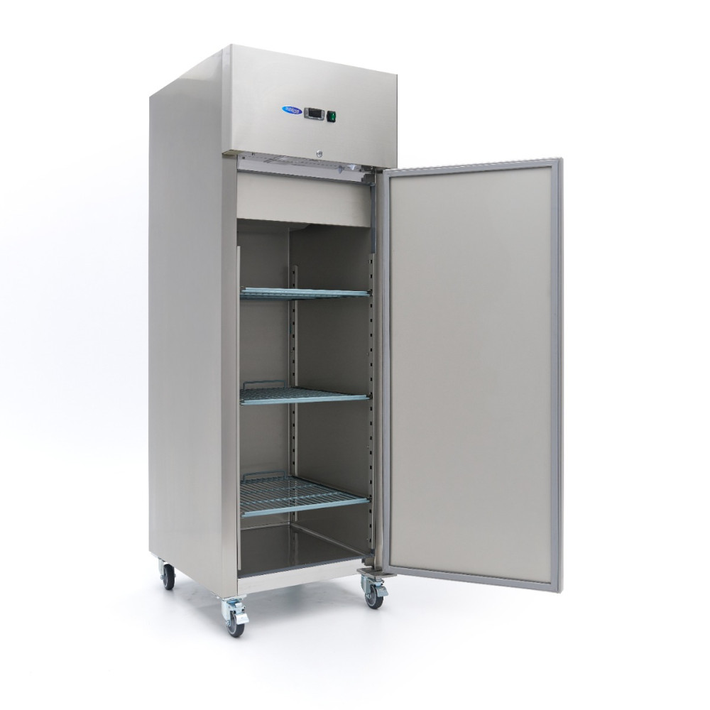 Tato chladnička o objemu 600 litrů je navržena pro spolehlivost, efektivitu a snadné použití v profesionálních potravinářských službách. Díky samozavíracím uzamykatelným dveřím, silné izolaci a intuitivnímu digitálnímu ovládacímu panelu zajišťuje tato chladnička přesné řízení teploty a optimální skladovací podmínky.