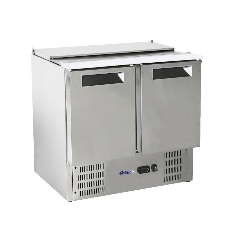 Tato krásná chladicí salátová souprava je vybavena dvěma dveřmi a praktickým prkénkem na krájení....