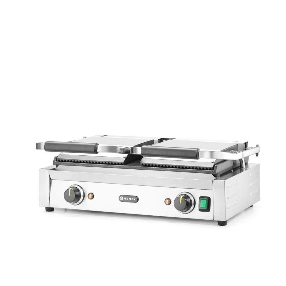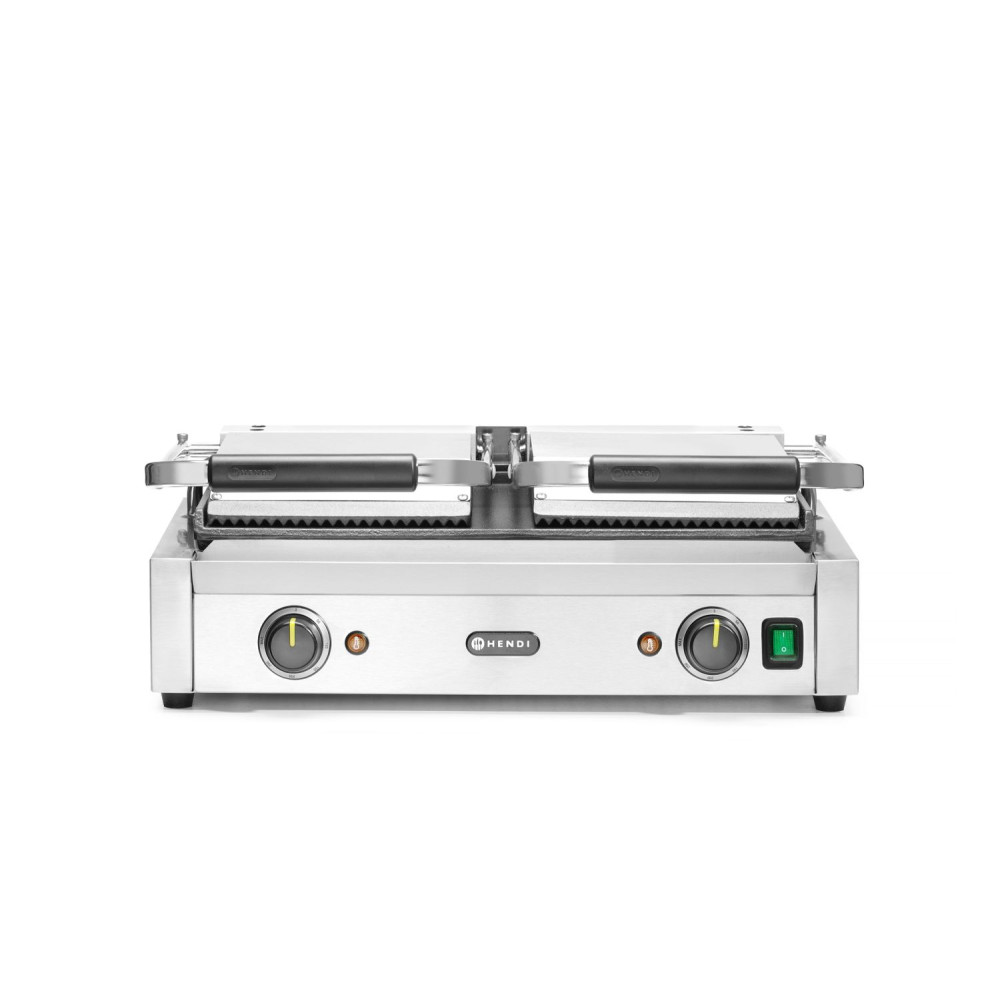 Kontaktní gril - double verze, HENDI, vroubkovaná horní, hladká spodní část, 230V/3600W, 570x375x(H)216mm | 263808