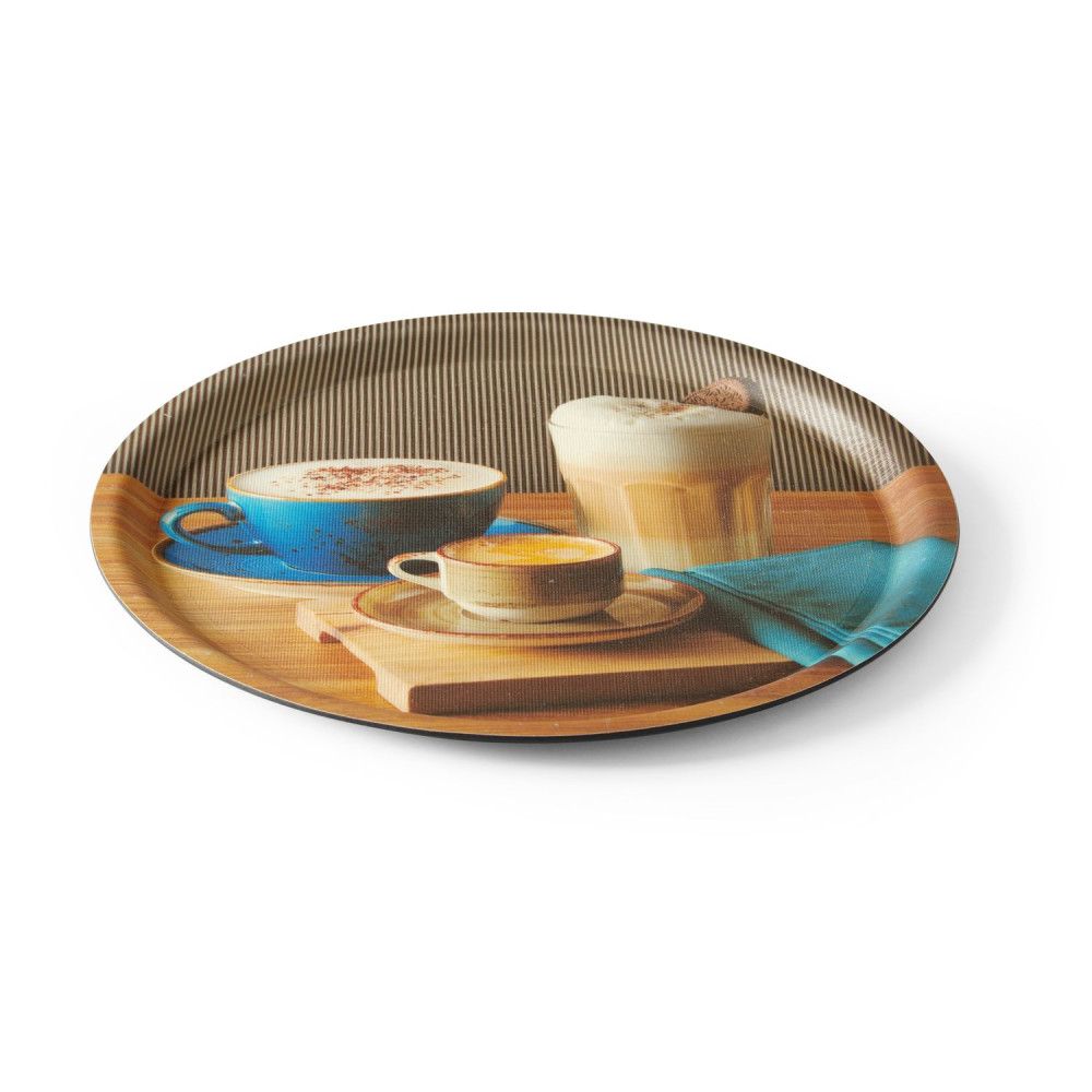 Servírovací podnos, protiskluzový, kulatý, s potiskem, HENDI, tasty coffee, 380x(H)15mm | 507971