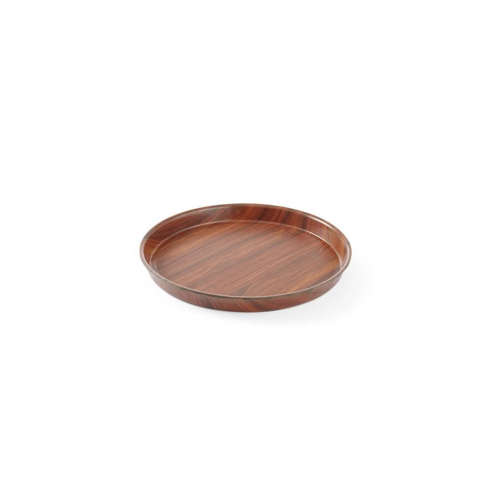 Tác servírovací laminovaný, protiskluzový, kulatý s vysokým okrajem, AmerBox, Mahagon, 420x(H)30mm | 507773