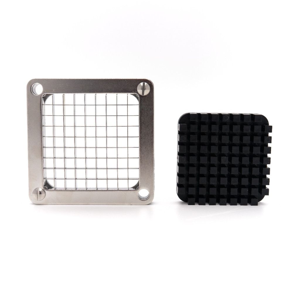 S tímto robustním vertikálním kráječem na brambory a zeleninu si během chvilky připravíte rovnoměrně nakrájené hranolky nebo kostky zeleniny. Má vyměnitelné čepele a lisovací bloky různých velikostí pro brambory nebo tvrdou zeleninu, jako je mrkev nebo jednohubky. Ideální pro každodenní použití v restauracích, cateringových kuchyních a občerstveních.