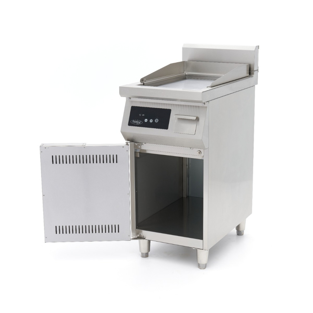 Tato kompaktní indukční grilovací deska s hladkým povrchem nabízí maximální kontrolu a rychlost. Díky digitálnímu displeji, automatickému vypnutí a zásobníku na sběr tuku je praktickou volbou pro každou profesionální kuchyni.