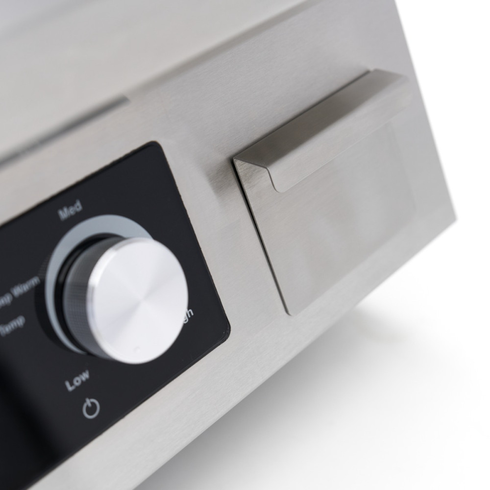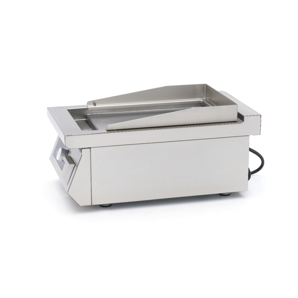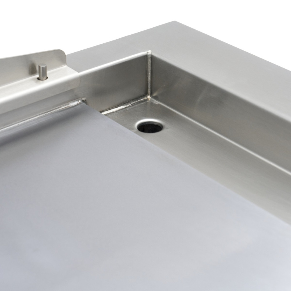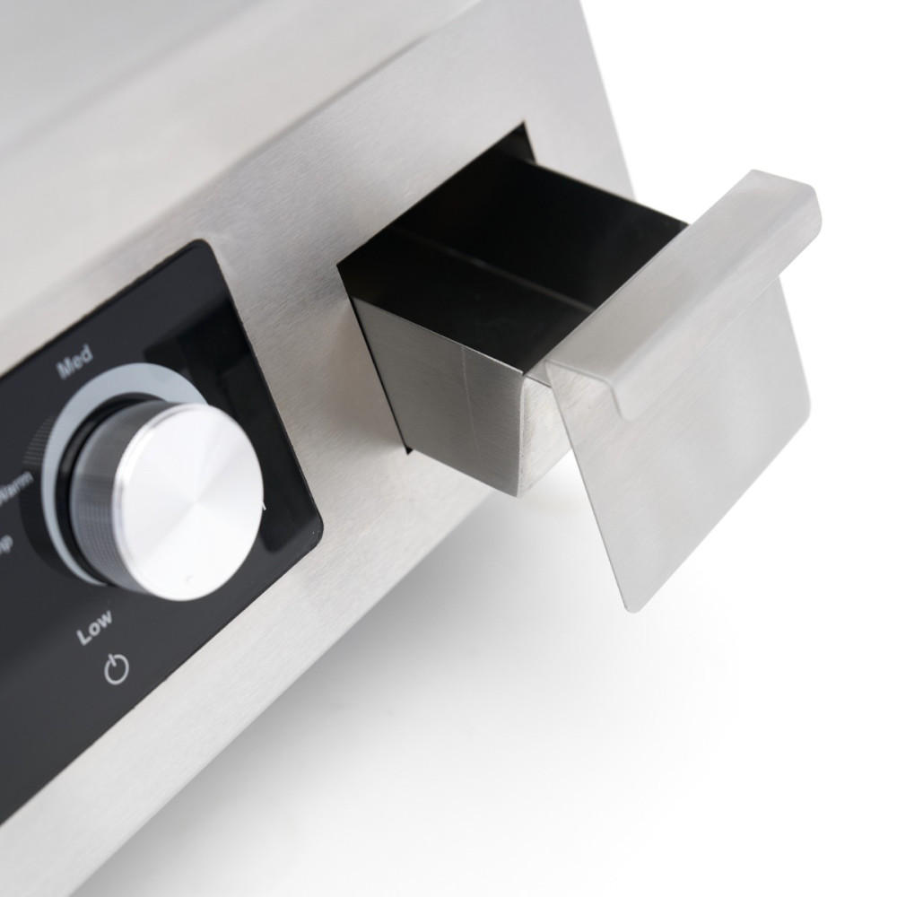 Hladký povrch z hladké oceli zajišťuje rychlé a rovnoměrné rozložení tepla, takže je ideální pro choulostivé produkty, jako jsou vejce, rybí filé, zelenina a palačinky. Díky kompaktnímu provedení bez podstavce je ideální pro použití na desce, v potravinářských vozech nebo v menších kuchyních. Odnímatelná odkapávací miska udržuje pracovní plochu čistou, zatímco elegantní design dodá každé kuchyni profesionální vzhled.