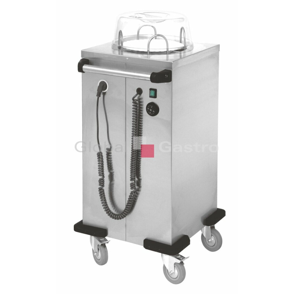 Celonerezový pojízdný zásobník na talíře s ohřevem, opatřen čtyřmi pojezdovými kolečky (2x brzděná), rohy jsou chráněny pryžovými dorazy, ergonomické madlo pro snadnou manipulaci v provozu. Čtyři stavitelná vodítka zajišťují spolehlivé vedení i talířů s větším průměrem. Výška výdeje se nastavuje v závislosti na hmotnosti talíře (snadnou úpravou počtu tažných pružin). Snadná regulace teploty vnitřního prostoru zásobníku v rozpětí +30°C až + 80°C. Model VOI-V s vnitřním prostorem uzpůsobeným pro vkládání talířů až do průměru 320 mm a vybaven mléčným polypropylenovým zákrytem.
