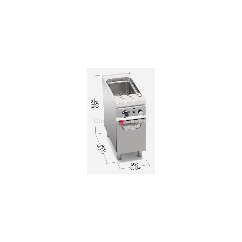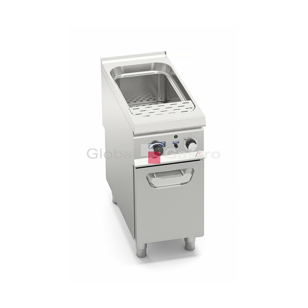 Ideální zařízení pro vaření těstovin, rýže, zeleniny a vajec díky rychlému vaření vody. K dispozici ve verzi plynové a elektrické. Přívod vody je umístěn přímo na pracovní ploše, což umožňuje snadné dopouštění, výměnu vody a odplavování nečistot přepadem. Vana je vyrobena z nerez oceli AISI 316 o objemu 40 litrů se zaoblenými hranami a vybavena vyjímatelným perforovaným dnem pro ukládání košů.
