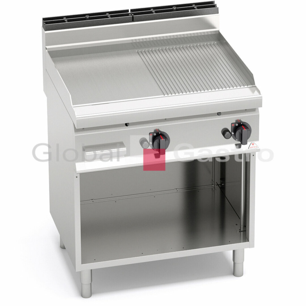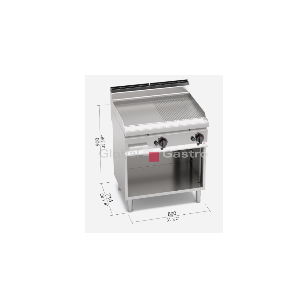 Termostatický ventil do 300°C pro přesnou a bezpečnou regulaci. Dvě zóny s nezávislým ovládáním a přesnou regulací teploty. Deska s hladkým(rýhovaným nebo kombinovaným) povrchem z oceli a zvýšenými postranními lemy.