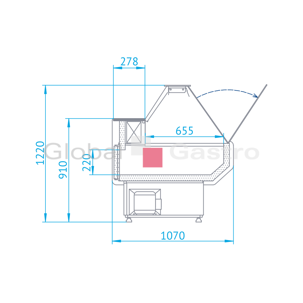 - Elektronický teploměr ze strany klienta a LED osvětlení na míru produktům, odklápěcí, ohnuté čelní sklo, nější a prosklená střecha