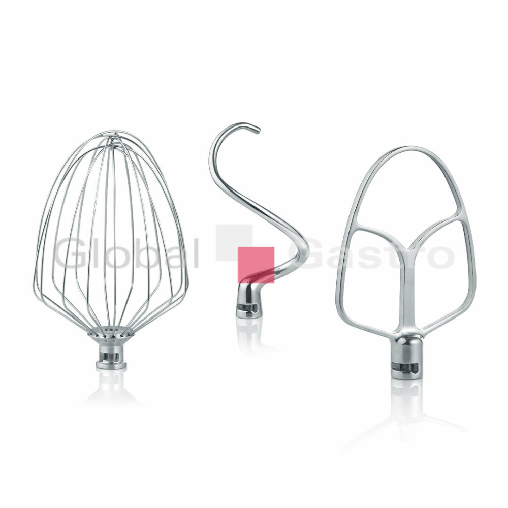 Přiložená 7litrová mixovací nádoba z nerezové oceli s označením množství náplně nabízí dostatečnou kapacitu pro velké množství lahodného těsta. Například lze zpracovat až 3 kg tuhého kynutého těsta, 20 bílků nebo 1,2 kg smetany. Součástí dodávky stojanového mixéru MYestro od GRAEF jsou kromě ochrany proti stříkající vodě také balónová metla, hnětací hák a plochý šlehač. Tři nerezové mixovací prvky lze mýt v myčce.