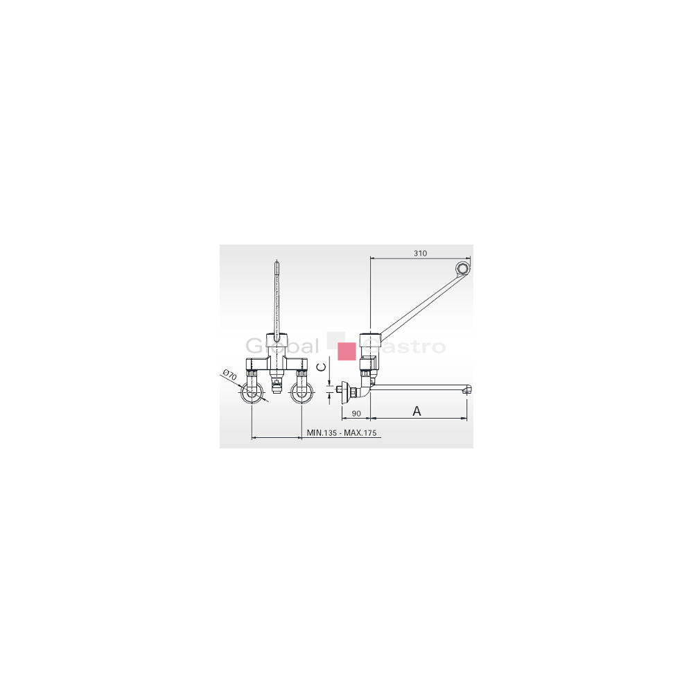 Model nástěnný, dlouhé hygienické pákové ovládání a otočné raménko d = 300 mm.