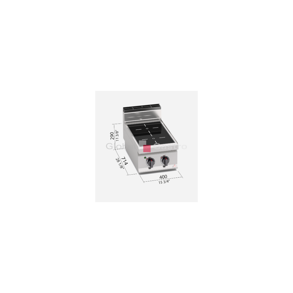 Varná deska má zcela hladký povrch, který zaručuje snadné a rychlé čistění bez nutnosti použití agresivních prostředků. Tloušťka desky umožňuje velmi přesnou regulaci teploty a výkonu(zóna 3,5 kW). Během několika sekund dosáhne deska teploty až 500°C. Obsluha ocení indikaci přítomnosti zbytkového tepla až 60°C.