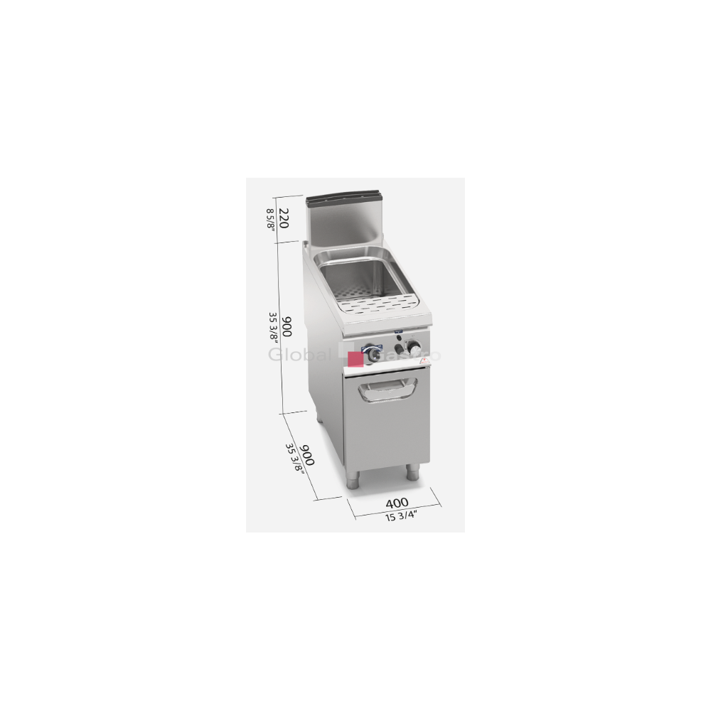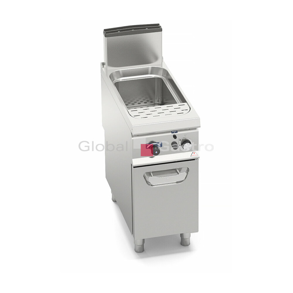 Ideální zařízení pro vaření těstovin, rýže, zeleniny a vajec díky rychlému vaření vody. K dispozici ve verzi plynové a elektrické. Přívod vody je umístěn přímo na pracovní ploše, což umožňuje snadné dopouštění, výměnu vody a odplavování nečistot přepadem. Vana je vyrobena z nerez oceli AISI 316o objemu 40 litrů se zaoblenými hranami a vybavena vyjímatelným perforovaným dnem pro ukládání košů.