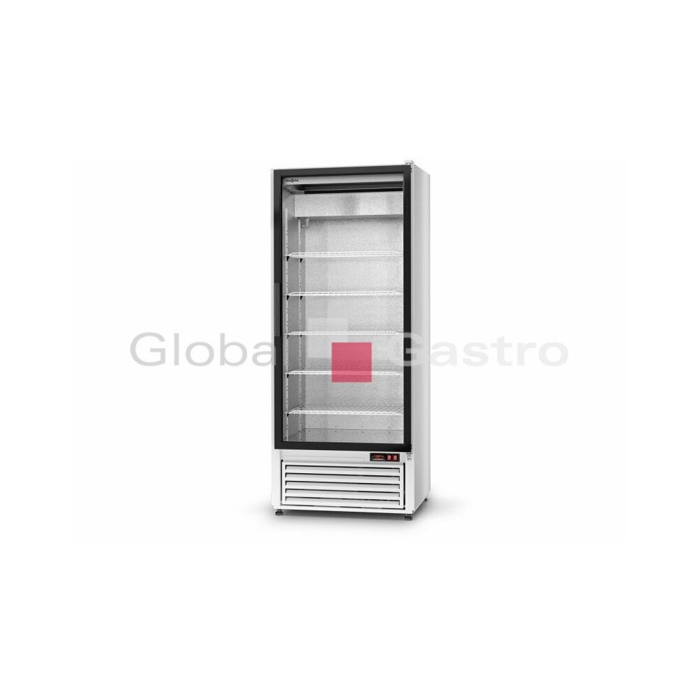 Prosklené chladící skříně - vhodné pro prezentaci, prodej, uskladnění a uchování potravin díky šetrnému způsobu chlazení (statické gravitační). Hygienické provedení - vnější opláštění (bílý lak), nerezové dno vnitřního prostoru, stěny jsou vyrobeny z AL plechu. Skříň je standardně vybavena 5ks polohovatelných roštů z plastem pokryté oceli. Automatické odtávání, chl. agregát Elektrolux, prosklené 1x křídlové dveře (pravé - na objednávku možno i levé), mechanické ovládání.