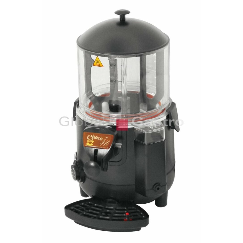 Výrobník horké čokolády CHOCO F-5 je koncipován na výrobu a prezentaci horké čokolády, ale i řady dalších horkých nápojů (káva, čaj, grog, punč, svařené víno atd.). Šetrný nepřímý systém ohřevu a udržení v teplém stavu (ohřev přes vodní lázeň-bain marie) s možností regulace teploty dle potřeby od +30 až do +100°C. Kontinuální rovnoměrné míchání (odolné míchací lopatky-vyjímatelné, hřídel vybavena silentblokem proti zanášení a namáhání) zamezuje tvorbě usazenin, sraženin a udržuje čokoládu v optimální konzistenci. Speciální konstrukce výpustného kohoutu zamezující ucpávání a umožňuje snadné čistění (kohout vybaven pákou snadného mechanického pročistění). Ohřev vody je prováděn v nerezovém duplikátoru (AISI 304), který je vybaven tepelnou ochranou. Snadno odnímatelná nádoba je vyrobena z odolného čirého polykarbonátu. Odkapová miska je vybavena plovákem indikujícím plný stav.