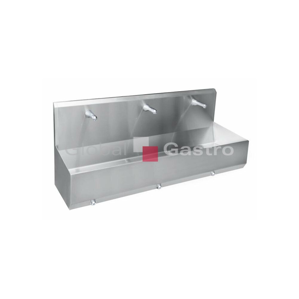 Mycí žlab v nerezovém závěsném provedení. Ovládání spouštění vody kolenovým ventilem. Odpad je umístěn vždy uprostřed délky mycího žlabu. Samostatné kolenové spouštění pro každou pozici. Směšovací ventil pro nastavení teploty vody