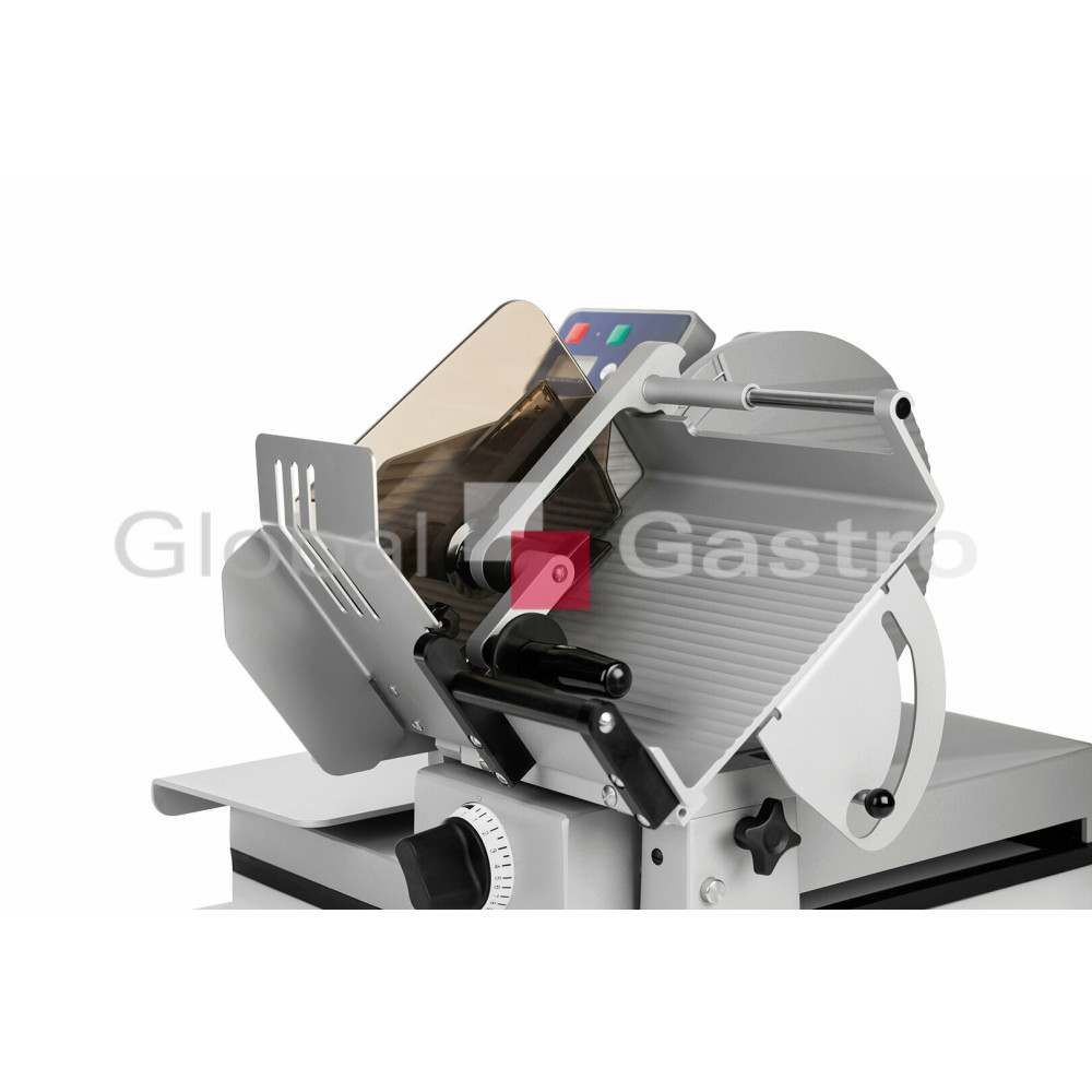 Profesionální nářezové stroje Graef linie MASTER CERA3 v hliníkovém provedení se speciálním keramickým nepřilnavým povrchem CERA3 (kompletní opláštění včetně vozíku a nože). Všechny komponenty lze snadno demontovat bez nutnosti použití speciálního nářadí. Pohon stroje je zajišťován šnekovým převodem s výkonným bezúdržbovým vzduchem chlazeným motorem. Ke stroji je dodáváno speciální výkonné brusné zařízení. Přesné nastavení síly řezu a uchycení produktu na vozíku s odlehčeným pojezdem pro velice snadné krájení. Bezpečné voděodolné piezzo ovládání s odolnými spínači. Podstava stroje je vybavena protiskluzovou gumou zamezující nechtěnému pohybu stroje a usazování nečistot pod zařízení.