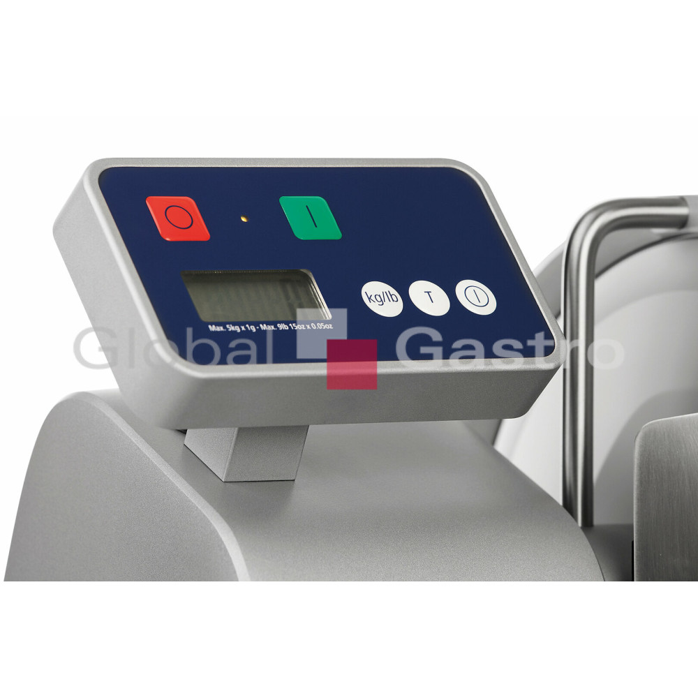 Model MASTER 3020 W CERA3 je v základu osazen váhou pro navažování krájeného produktu, což usnadňuje pracovní postup, zkracuje vzdálenost mezi řezacím strojem a měřidlem (váhou).