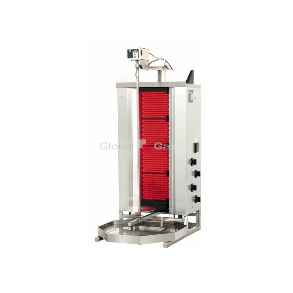 Elektrický gril na gyros, model CE4 od Německé firmy POTIS. Kapacita 70kg. Model CE4 má pohon jehly umístěn nahoře a je osazen tepelným krytem motoru. Posuv vzdálenosti motoru, jehly a naklánění jehly umožňuje lépe regulovat teplotu v jednotlivých úrovních tepelně opracovávaného produktu. Nové sklokeramické krytí těles ROBAX Ceramic Glass (snadná údržba a prodloužení životnosti topných spirál).