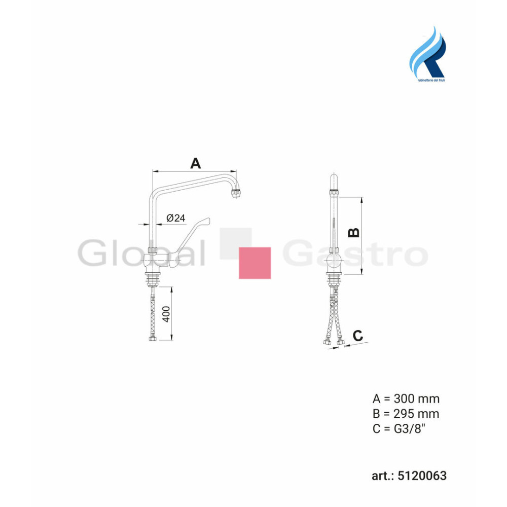 Model stolní, dlouhé hygienické pákové ovládání a otočné raménko d = 230mm.