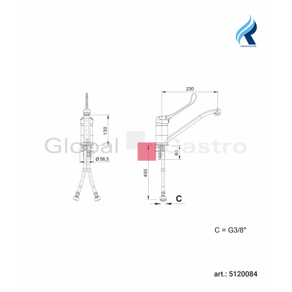 Model stolní, dlouhé hygienické pákové ovládání a otočné raménko d = 230mm.