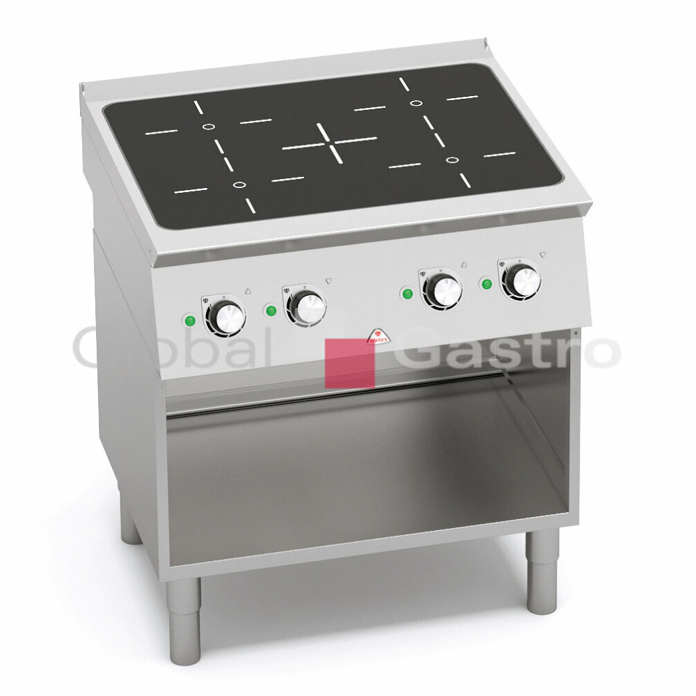 Keramická varná deska, tloušťka 6 mm (snadná každodenní údržba bez použití agrasivních prostředků). Maximální úspora energie, vytápění varné plochy je pouze při kontaktu hrnce s varnou plochou. Velikost topných zón je samo-regulovana podle průměru nádobí. Při odstranění nádobí z povrchu je automaticky přerušeno vytápění. Elektronická regulace teploty je prováděna potenciometrem. Kompaktní provedení s otevřeným podstavcem. Model TOUCH s dotykovým elektronickým ovládáním.