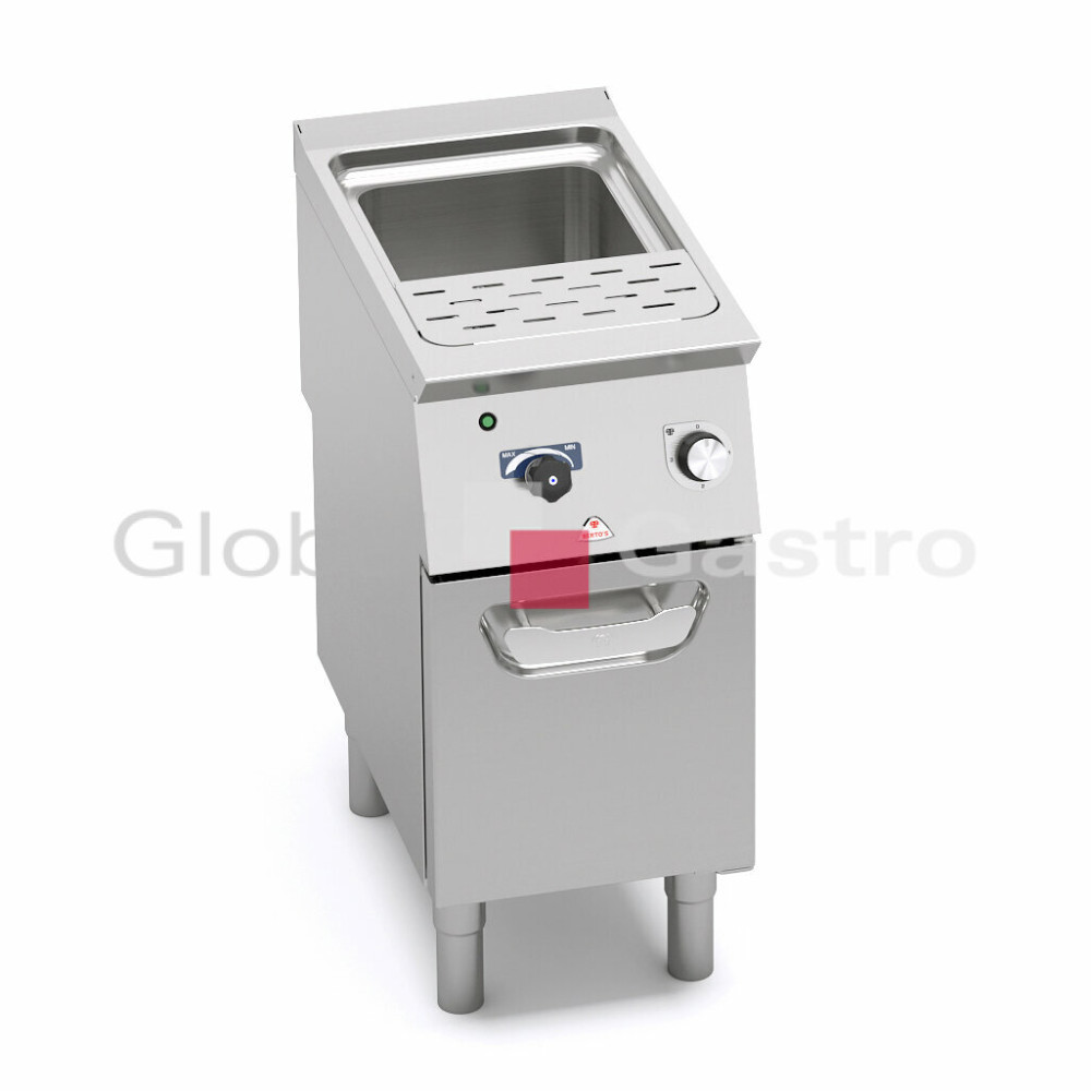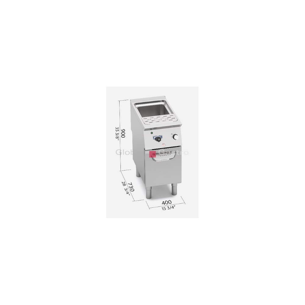 Vysoký výkon zaručený systémem vytápění umístěným vně povrchu pláště nádrže s pojistným termoventilem a chráněným zápalným plaménkem. Piezoelektrické zapalování s gumovou ochranou. Lisovaná vana se zaoblenými hranami vyrobená z nerez oceli AISI 316.