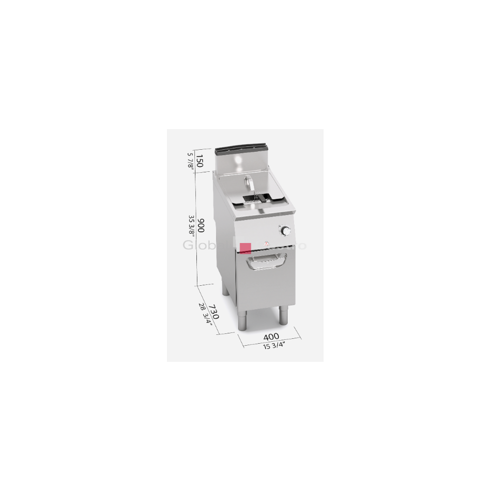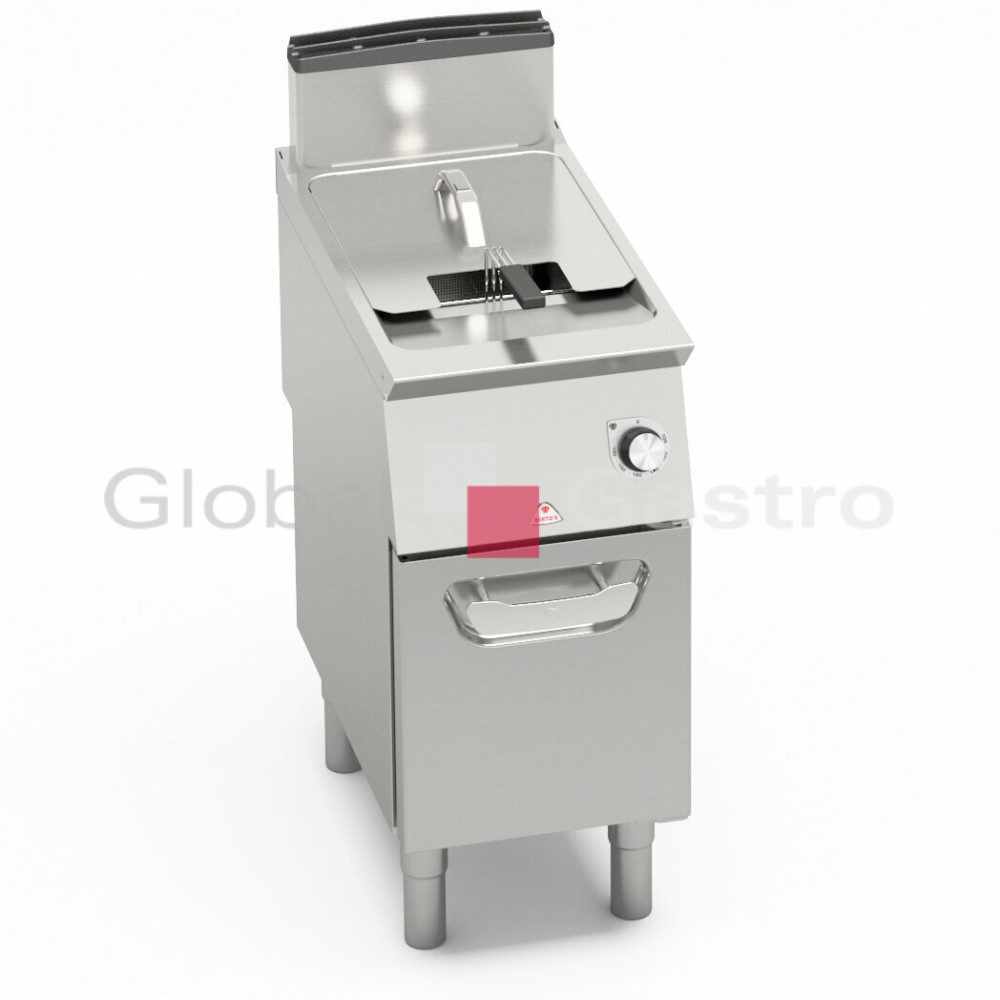 teploty pomoci přesného elektrického termostatu. Hořák je vybaven pilotním plamínkem a bezpečnostním systémem s termočlánkem. Možnost regulace teploty v rozmezí od 110°C do 190°C. Maximální výkon 20 kg/h. Průměrná doba smažení cca 6 minut. Čas předehřevu cca 10 minut (z 20°C na 190 °C) piezoelektrické zapalování.