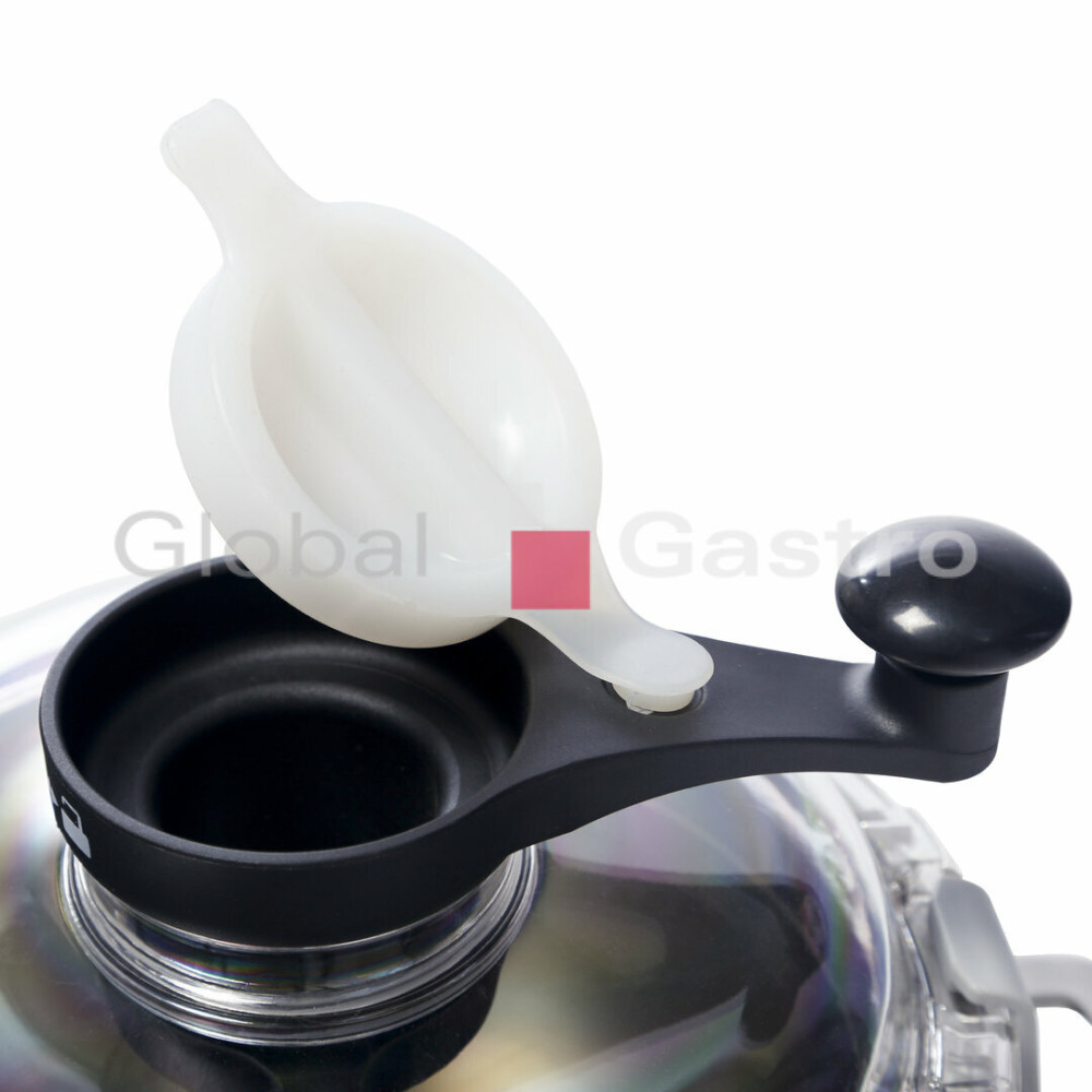 Odnímatelná nádoba na přípravu potravin má celkový objem 8 l. Plastový kryt chrání před možným vystříknutím obsahu, snižuje provozní hluk a zaručuje vám dokonalou kontrolu. Pro optimální pohled do nádoby je ve víku integrován stěrač. Plnicí otvor ve víku slouží k dodatečnému přidávání přísad během sekání. Boční rukojeti na nádobě zaručují bezpečnou a pohodlnou přepravu