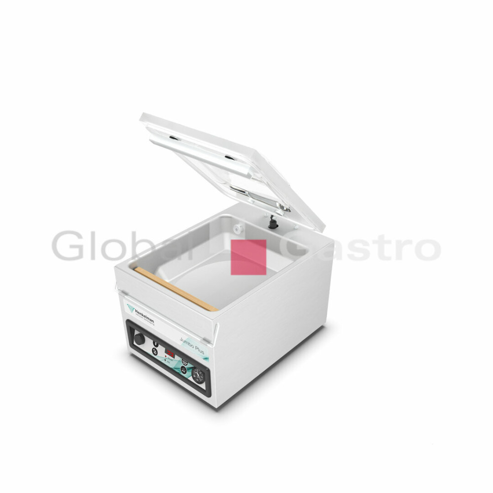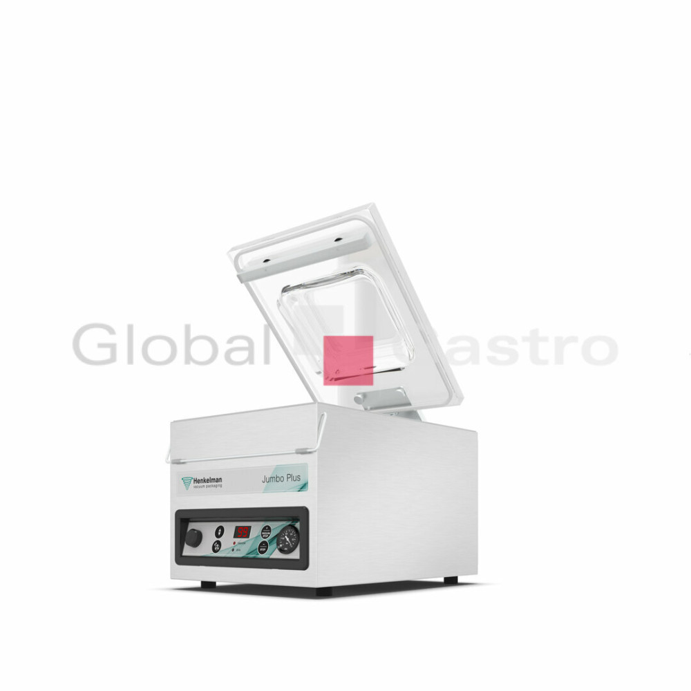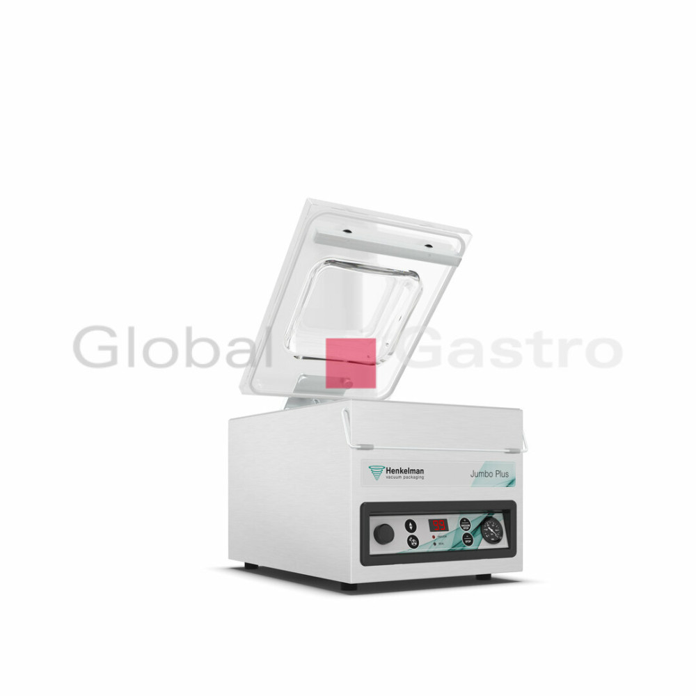 Prodlužte trvanlivost masa, drůbeže, ryb, sýrů, zeleniny a dalších potravin včetně tekutin. Ochraňte je před působením vnějších vlivů. S výkonnou, profesionální a spolehlivou jednokomorovou vakuovou baličkou Jumbo Plus od holandské firmy Henkelman to půjde snadno. Vakuová komora se zaoblenými rohy má délku komory 310 mm, šířku lišty 263 mm (max. šířka sáčku) a výšku komory 130 mm a dokonale uchová trvanlivost produktů.