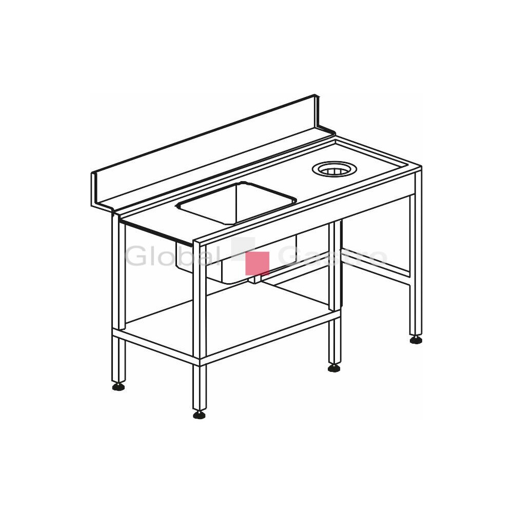 Stůl vstupní s dřezem s odpadním otvorem a policí 1500 x 730 x 850 mm | KROMO 8644294