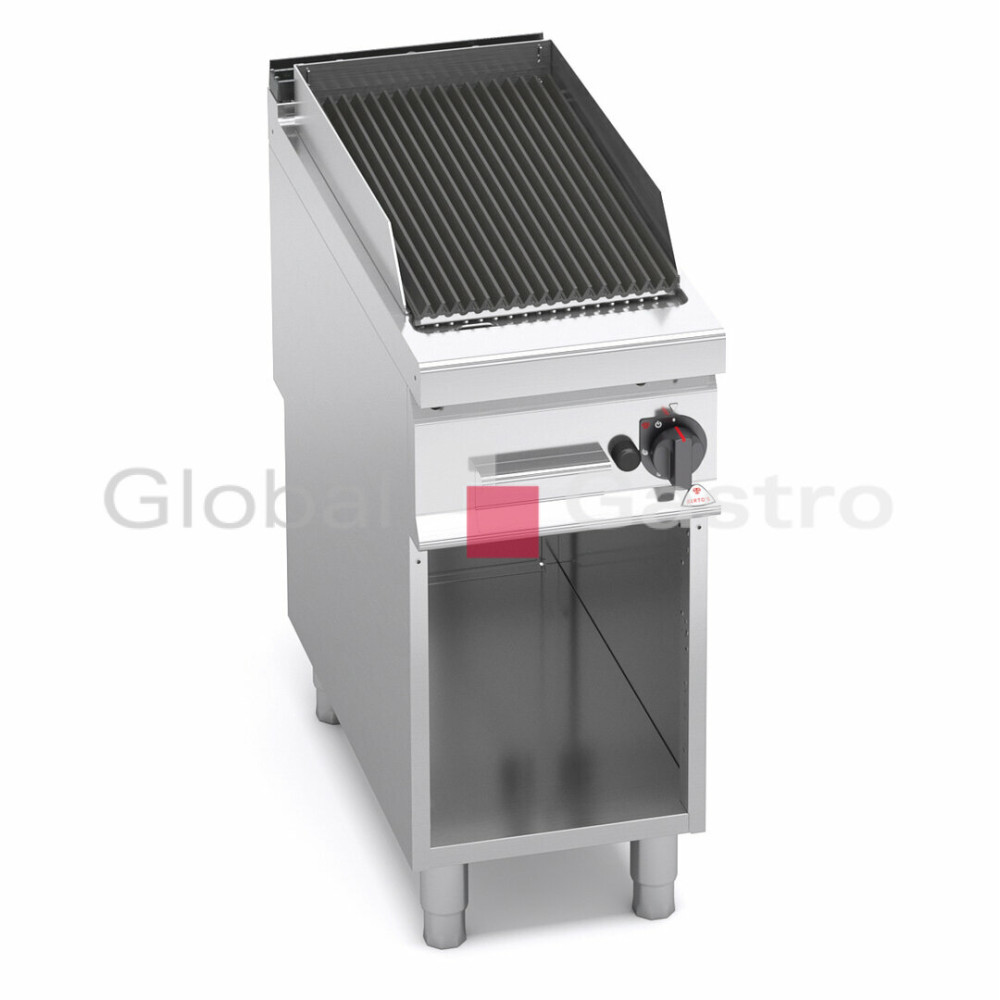 Ohřev lávového kamene dvojitým trubkovým hořákem z nerezové oceli s optimalizovaným spalováním, bezpečnostním ventilem, termočlánek a chráněný zápalný plamínek. Piezoelektrické zapalování s gumovou ochranou. Regulace teploty ventilem s horní a dolní pozicí. Zvýšené postranní lemy. Grilování je přirozený způsob vaření na ohni. Díky své schopnosti dokáže gril s lávovými kameny obnovit tradiční způsob grilování s přesnější kontrolou teploty. Snadnější čištění a větší bezpečnosti pro provozovatele. Gril je kompletně vyroben z nerezové oceli, rošt je tvarován tak, že provozovatel může pracovat na velké ploše, která je vhodná pro různé druhy potravin (např. maso, ryby a zelenina). Tvar roštu je uzpůsoben lepšímu odtékání tuku do velkého sběrného zásobníku. Elektrická vodní verze je také k dispozici.V nabídce také elektrické vodní grily s šetrnou a zdravou přípravou pokrmů.