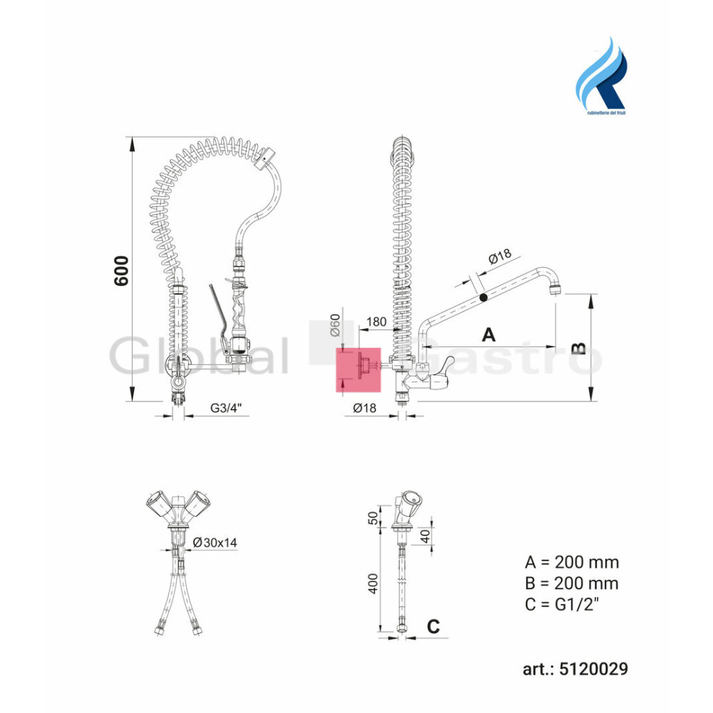 Sprcha tlaková na nádobí STAR 166 | Rubinetterie del Friuli 5120029