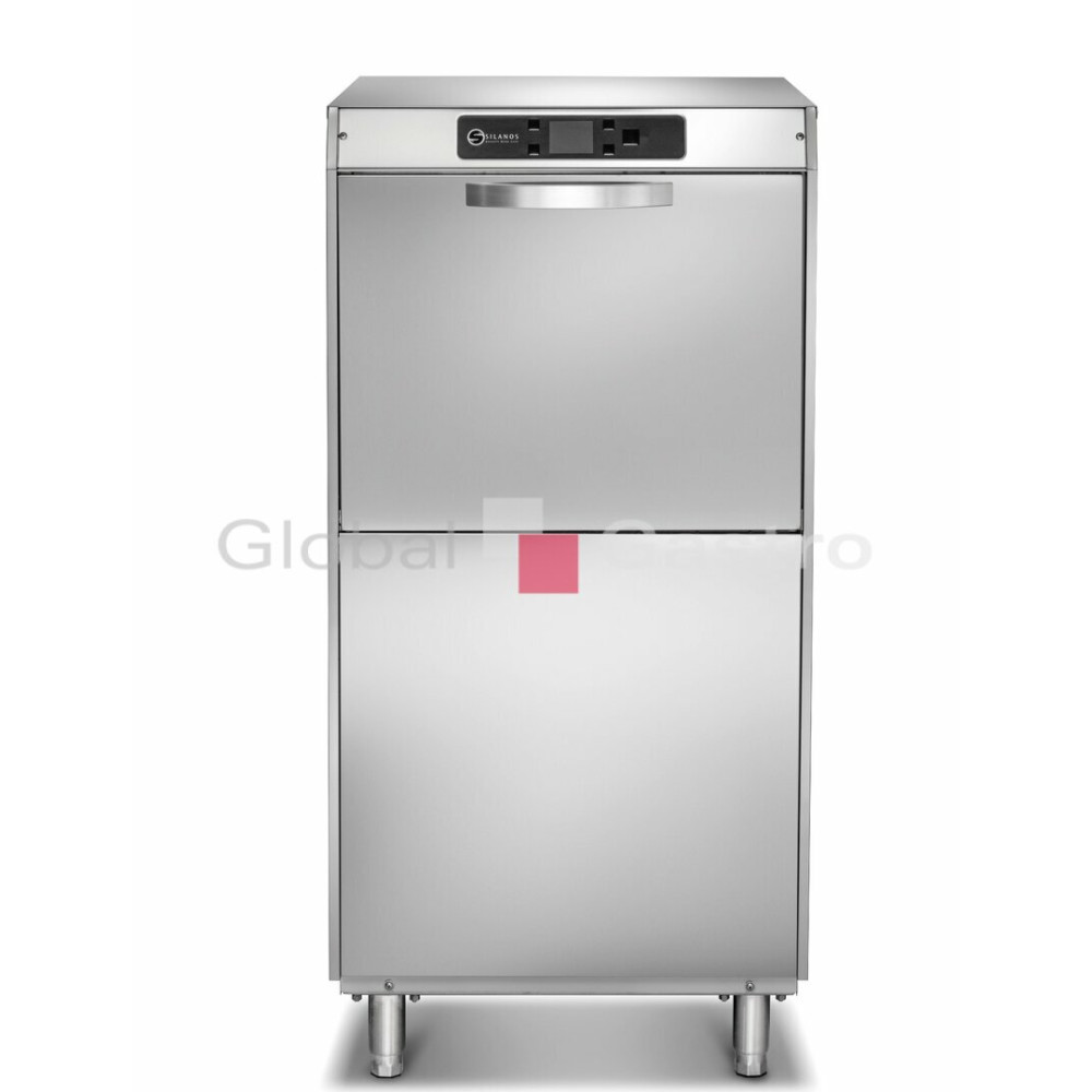 Automatická dvouplášťová myčka kuchyňského (černého) nádobí VS P57-42N-DBS s čelním plněním v celonerezovém provedení. Speciální konstrukce mycích ramen proti zanášení (snadno demontovatelná pro čištění). Lisovaná vana s dvojitými filtry a oblými rohy pro hygienu a snadnou údržbu. Dvouplášťové provedení výrazně snižuje hladinu hluku a tepelné ztráty (náklady na energie, lepší pracovní prostředí). Velký zakládací koš (570 x 620 mm) a úložná výška až 420 mm (využitelný výška 395mm) umožňuje mýt talíře, příbory, podnosy, gastronádoby, pekařské plechy a přepravky (600 x 400 mm). Vysoce účinné mycí čerpadlo zajišťuje dostatečný výkon pro mycí a oplachová rotační ramena. Bezproblémový chod stroje zajišťuje snadné elektronické ovládání s LCD displejem EVO2 s funkcí automatického startu při uzavření zákrytu. Čtyři přednastavené mycí cykly pro různé typy nádobí. Dvě úrovně menu: ovládací a technické (chráněné kódem PIN - servis). Počítadlo denního a celkového počtu cyklů. Základní výbava myčky: 1x koš 570 x 620 mm univerzál na kuchyňské nádobí, 1x stojan na plechy, 1x košíček na příbory. VS P57-42N-D(S): koš 570x620mm, dávkovač mycího a oplachového prostředku, odpadové čerpadlo model "S" Základní výbava: 1x koš univerzál + stojan na 9 plechů + 1x koš na talíře 24 ks